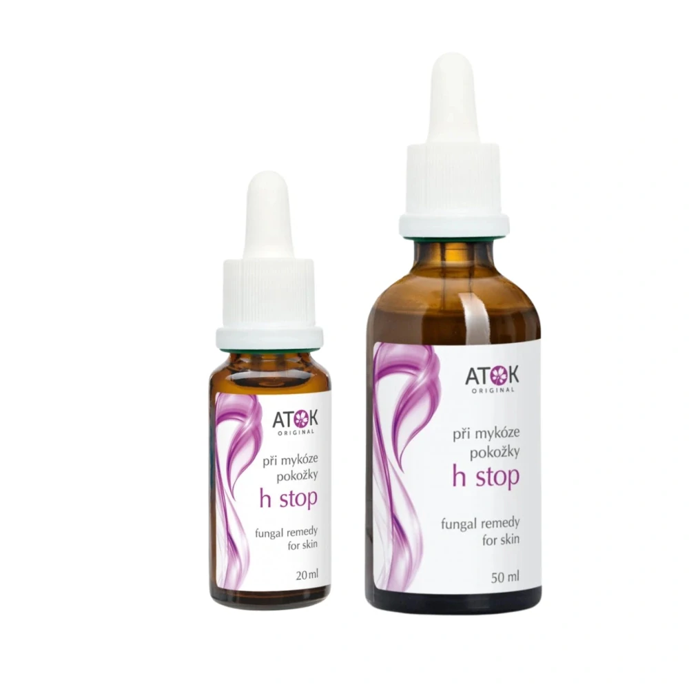 H Stop je olejový prostředek k péči o pokožku nohou, zejména v oblasti meziprstí. Účinně přispívá ke zmírnění nepříjemných projevů (např. svědění, pnutí popř. zápach) souvisejících s výskytem různých kožních anomálií. Pokožku zvláčňuje, zabraňuje jejímu nadměrnému vysoušení a rozpraskání. Cíleně zvolená kompozice aktivních látek je účinným a příjemným deodorantem na přírodní bázi. Obsažené éterické oleje z tymiánu, hřebíčku, šalvěje a túje jsou známy výraznými antimykotickými účinky.