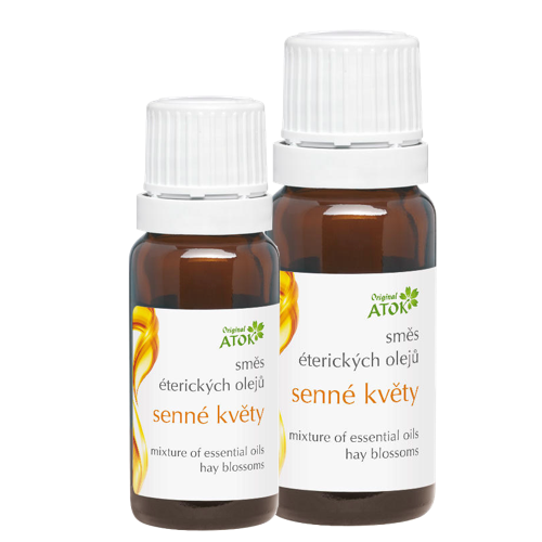 ATOK Směs éterických olejů Senné květy je směs určená k inhalaci. Povzbuzuje a osvěžuje, zlepšuje koncentraci, vnímání a myšlení.